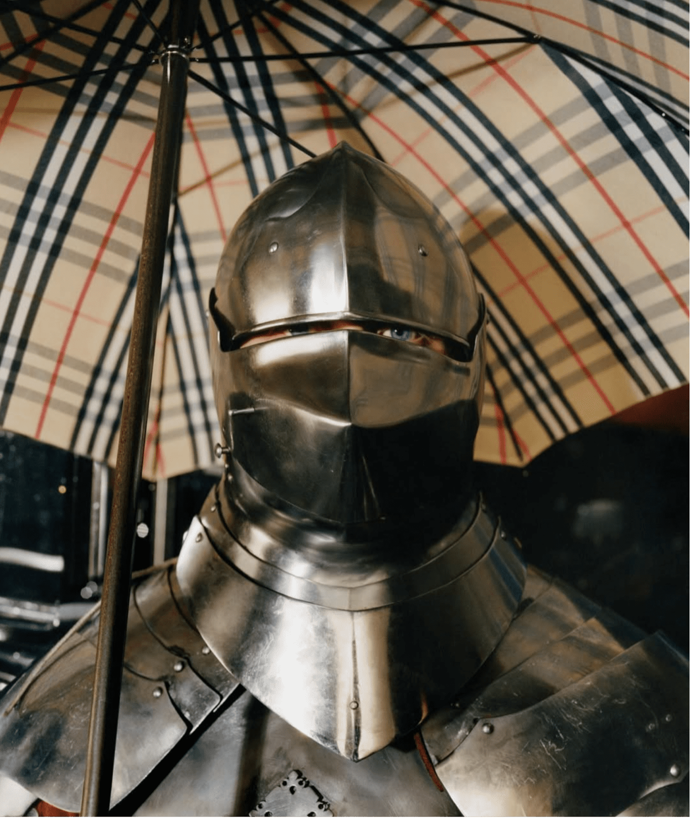 Draped in a Burberry check scarf, the knight wasn’t just a runway stunt; it was a fully realized character in the world of Burberry, arriving on the red carpet like an A-lister, getting papped by press, stopping for selfies with Anna Wintour, and taking a prime front-row seat beside Nicholas Hoult. It was a moment that blurred the line between fashion and entertainment.