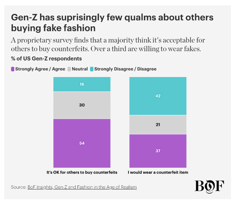 A survey by Business of Fashion revealed that more than a third of 13 to 25-year-olds are happy to don fake designer brands rather than fork out for the real deal. With the cost-of-living crisis in full swing, consumerism is still being supercharged by influencer culture. A different designer bag for each day of the week is often part of the desired look. But if it looks good on Instagram, who cares if it’s fake?